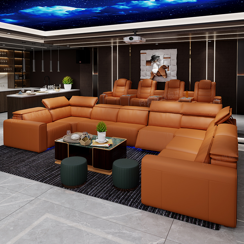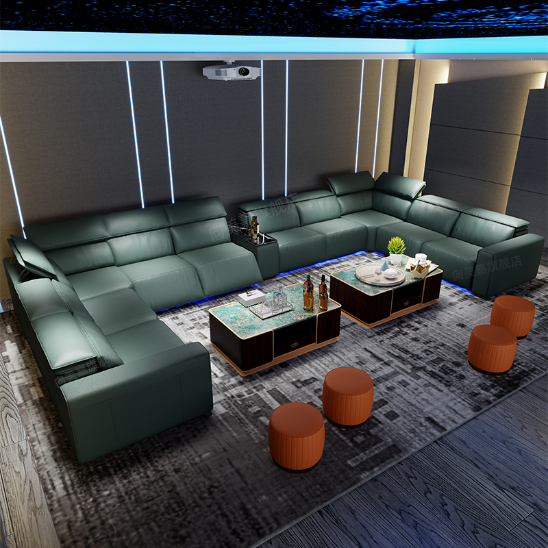 向美嘉豪华影音室L型电动真皮沙发意式U型客厅家庭影院KTV转角U型组合